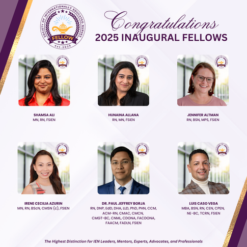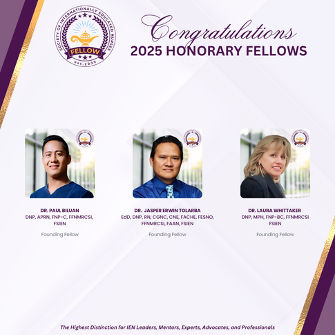 The Fellowship of the Society of Internationally Educated Nurses (FSIEN) was created to recognize and honor the extraordinary contributions of internationally educated nurses (IENs) and their allies. IENs play a vital role in strengthening healthcare systems, yet their leadership, scholarship, and advocacy often go unrecognized. FSIEN establishes a formal, prestigious credential that celebrates their impact, elevates their voices in policy and practice, and ensures their work is acknowledged on par with global nursing leaders.